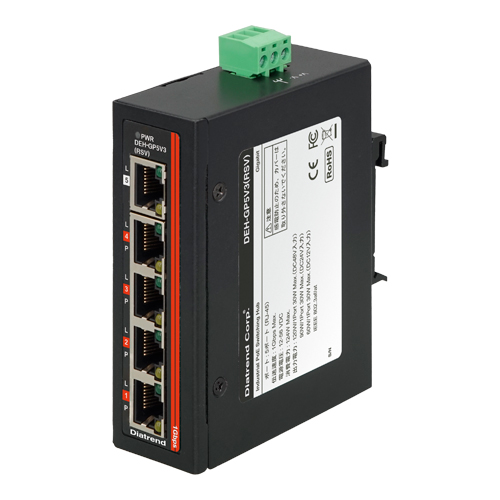 DEH-GP5V3(RSV)は、鉄道振動試験規格に対応し、DC12〜56Vの幅広い入力電源に対応した産業用PoEスイッチングハブです。