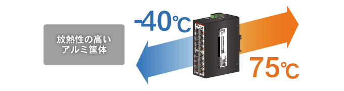 動作温度-40〜75℃に対応しており温度差の大きい工場等で使用できます。